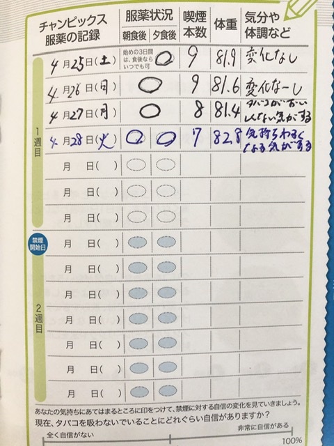 4/28禁煙手帳の記録