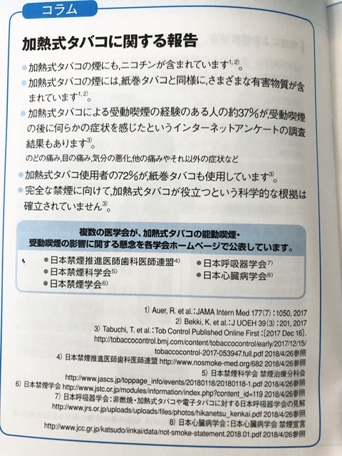 主に紙巻きタバコに関するデメリットが記載されていますが、加熱式タバコの害も載せられていました。