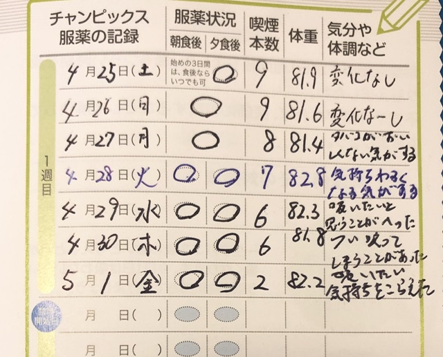 でも、こらえることが出来たのはやはりチャンピックスの効果があったということは揺るぎない事実だと思います。