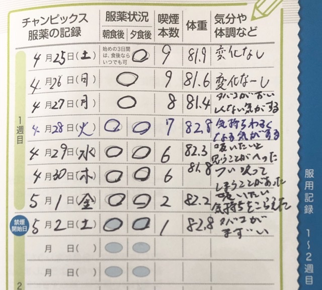 日付欄の横に禁煙開始日と書いてあるのにしれっと1本吸って、タバコの感想を書くこの神経。